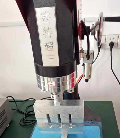 超聲波焊接模具頭頻率為15khz,設備功率為3200w,壓接尺寸210*6mm,單件焊接時間0.5s,模具底部出齒(上圖標注)。