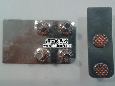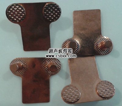 超聲波焊接機(jī)用于電池正負(fù)極引片的焊接。正極引片材質(zhì)為1050鋁,厚0.4mm,鉚釘直徑Φ4mm,帽Φ6mm;負(fù)極引片材質(zhì)為紫銅鍍鎳,厚0.3mm,鉚釘直徑Φ4mm,帽Φ6mm。